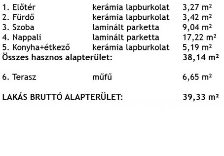Bruttó alapterület 39,33 m2